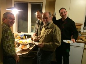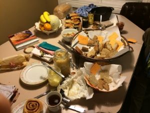 What a delicious evening! Thanks to everyone for bringing unique and scrumptious bread. We tasted, baguette, sour-dough, whole wheat, no knead, and multi-grain breads. We were also treated to brie cheese, sausage and homemade jam.